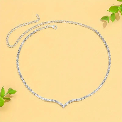 Adjustable Clasp V-shaped Necklace, paved with clear Rhinestone gems